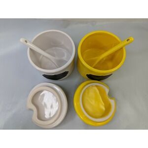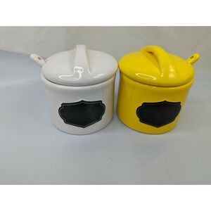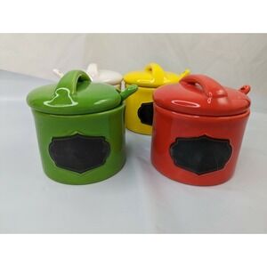 Avon Condiment Jar Lot Chalk Label Spoons Red Green Yellow White - great pre-owned condition, light wear from use/storage, please view all pics.