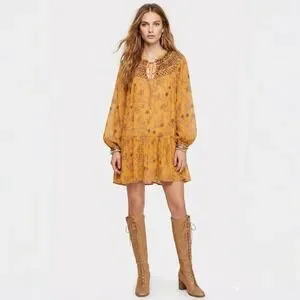 Free People Tunic Dress Keeping Up with Kara Orange Floral SHEER Boho Festival L