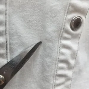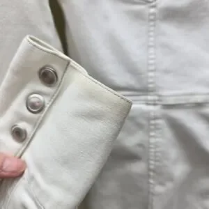 Condition: Preowned. No rips or holes. There is a very small stain on the front and stains on the cuffs. Please view all photos for description details