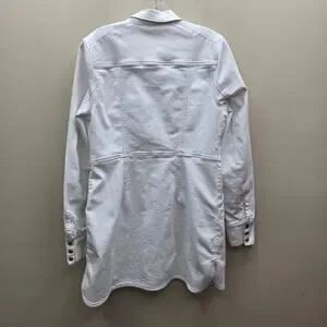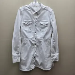 Free People Dynamite White Denim Mini Shirt Dress Snap Front Long Sleeves SZ Med