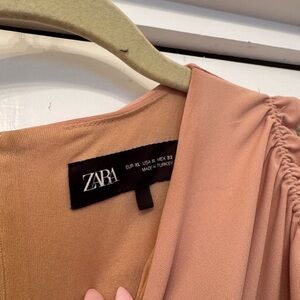 Zara SHORT RUFFLED DRESS XL | BEIGE-PINK