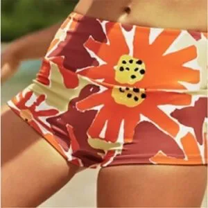 Features: Soft fabrication, colorful floral print fabrication, wide waistband for support, boyshort-cut legs, lined