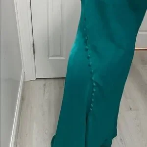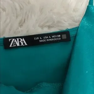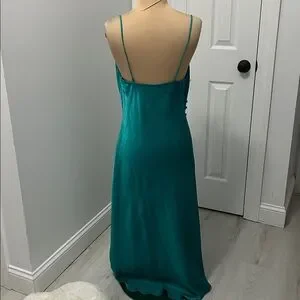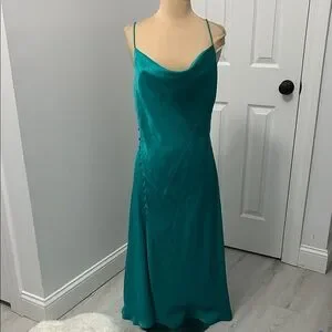 Zara Teal Satin Draped Neck Spaghetti Strap Dress