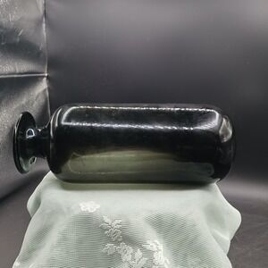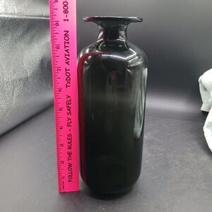 This handblown glass table vase features a vintage Gothic style color, perfect for adding a unique touch to any space. Its so classic it will fit a Mid-Century Modern style or an industrial minimalist theme, this handblown vase stands at 9 inches tall and 4 inches long, making it a statement piece in any room. The glossy finish and handcrafted production technique give it a high-quality look, while its unmarked, the pontil shows it original production add to its vintage appeal. Ideal for those who appreciate handmade craftsmanship and distinctive decor.