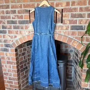 Denim Belted Button-Front Maxi Dress, NWT petite small
