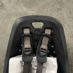 Secure and comfortable child bike seat in sleek black. Perfect for family rides.