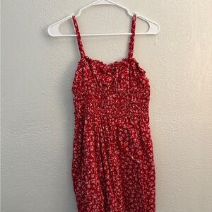 Sweet and summery red mini dress featuring a delicate white floral print, stretchy smocked bodice, and adjustable spaghetti straps for the perfect fit. Lightweight and flowy with a flattering, feminine silhouette—easy to dress up or wear casually all season long.