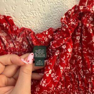 ❤️ Color: Red with white floral print