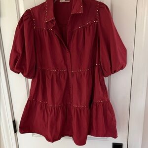 Peach Love California Red Tiered Mini Dress with Rhinestones