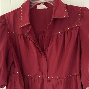 Winter Berry Tiered Mini Dress - a festive masterpiece that brings effortless movement and a touch of sparkle to your seasonal wardrobe. Crafted from breathable cotton, this berry-colored beauty features delicate rhinestone detailing that wraps all the way around for a full shimmering finish.