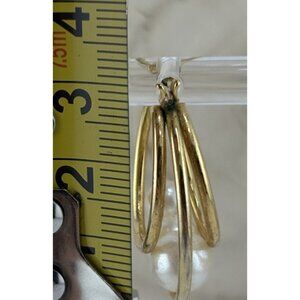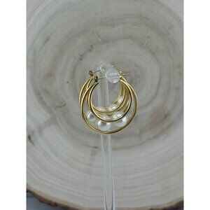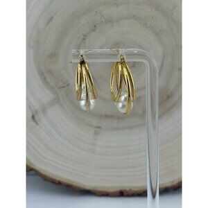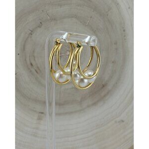 Vintage gold-tone hoop earrings with faux pearl beads -pierced