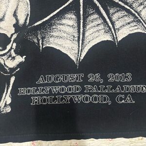 Rare find for the A7X fans! This black graphic tee commemorates the August 26, 2013 album release show for "Hail To The King" at the iconic Hollywood Palladium.