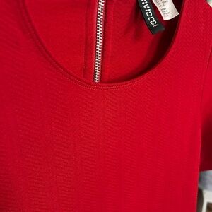 Chic and versatile red dress from H&M featuring a textured fabric and a flattering silhouette. Designed with a zipper in the back for easy wear. A great staple piece that can be dressed up with heels or worn casually with flats or sneakers.