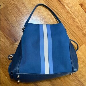 Elegant Coach shoulder bag in navy and cream. Features a classic design with dual handles. Perfect for everyday use.