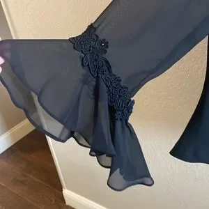 Sandra Darren Black Ruffled 3/4 Sleeve Blouse