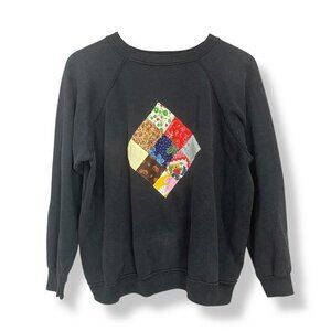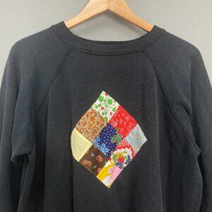 Vintage Patchwork Sweatshirt Black Size Large Quilt Patch One-Of-A-Kind Unique