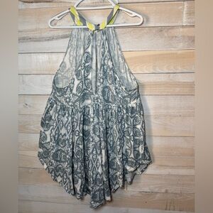 Free People Mimi Tunic Top Blue/ White Linen Blend Flowy Tank Top Size Large