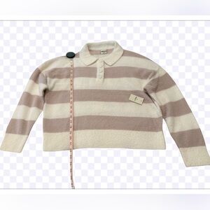 NEW NIKKA K Cozy Striped Brown and Cream Sweater With Buttons Size XL.