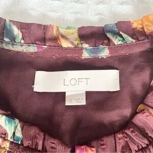 LOFT Maroon Multicolor Feather Print Top Small