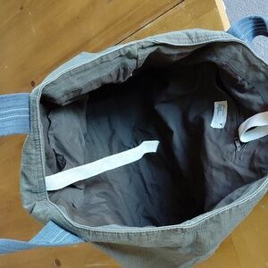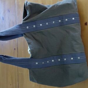 Stylish vtg American Eagle canvas tote bag with blue handles and gray/green body. Perfect for everyday use, I thought it would make a good library bag or overnight bag. Great used condition. (books not included) Y2K, Travel, Utility, Vintage.