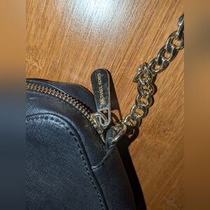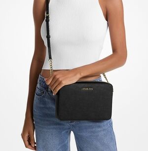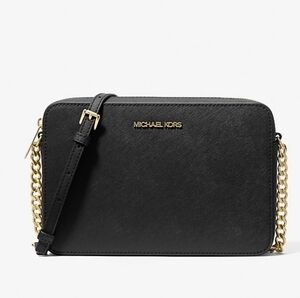 Michael Kors Jet Set Large Saffiano Leather Crossbody Bag Black And Gold