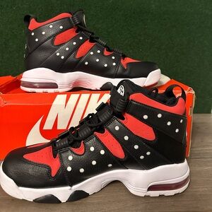 The Nike Air Max 2 CB '94 Black Gym Red is an athletic shoe endorsed by former basketball player Charles Barkley.