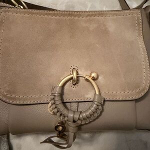 Elevate your style with this chic See by Chloé taupe/gray leather and suede shoulder bag. Perfect for any occasion, it combines elegance with functionality as it has a long crossbody strap as well. Used for a short period of time. No signs of wear on the outside. The inside could use a cleaning and it is shown in pictures.