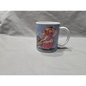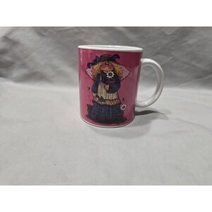 The Mindy Cain Garden Mug Set of 4 is a charming addition to any home, featuring a round shape and a colorful painted design. Made of porcelain and ceramic, these medium-sized mugs are perfect for enjoying hot or cold beverages. With a capacity for each mug, this set is ideal for serving 4 people. The unique Mindy Cain pattern and character make these mugs a delightful collectible item, perfect for all occasions. Designed by Design Pac in the year 2000, these mugs are a charming representation of country style. The yellow mug has a small chip and all the mugs have minor scratches in the picture area. the picture is on both sides of the mug. Thank you.