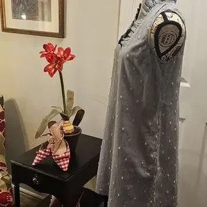 Crown & Ivey Sleveless Dress, Striped, Lined, Ruffled Neck, Size S