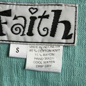 Like new Faith cardigan in a soft turquoise tone with mixed-texture knit and decorative patchwork details. Features a flattering V-neckline, front button closure, and front pockets for a cozy, casual look. Lightweight cotton-blend knit is perfect for layering year-round.