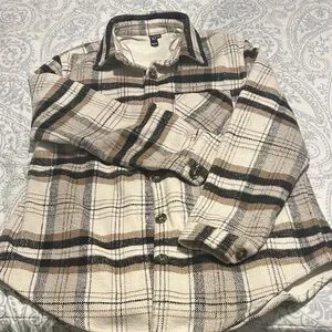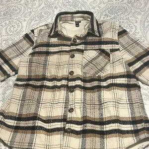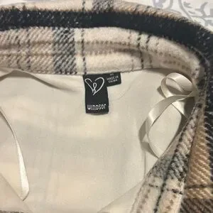 Stylish plaid varsity jacket by Windsor. Features a classic button-up front. Perfect for layering. Soft cozy for winter sports.