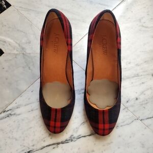 J.Crew plaid tartan wool like fabric almond toe block heels pumps