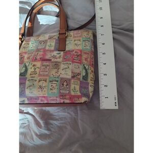 Fossil Crossbody Purse Tote Vintage Soap Label design print multi pocket boho