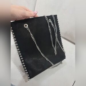 ZARA Black Studded Chain Tote Bag – Silver Hardware