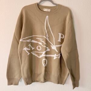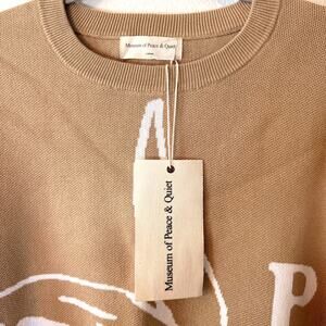 Museum of Peace & Quiet Knit Sweater Tan Size Large Streetwear 100% Cotton NWT