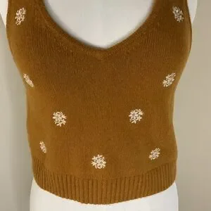 Madewell Floral-Embroidered V-Neck Sweater Tank in the color Acorn 55% Wool SZ S