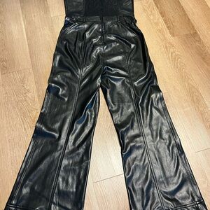 Alice + Olivia Black Linette Vegan Leather Jumpsuit 29 inch inseam
