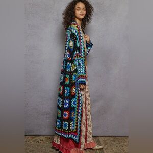 boho cardigan, crochet duster, granny square sweater, POL cardigan, turquoise cardigan, black cardigan, long crochet sweater, bohemian knitwear, retro cardigan, festival outfit, cottagecore cardigan, handmade look sweater, open front cardigan, artisan style, statement layering piece