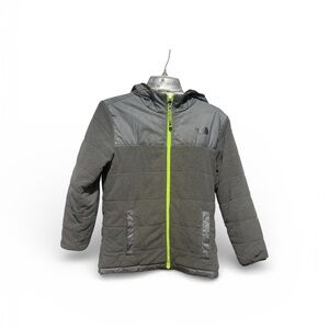 North Face Gray Hooded Jacket with Neon Accents reversible
