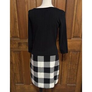 Elegant long sleeve dress. Black top with checkered black and white skirt. Perfect for any occasion.