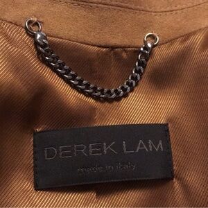 Sophisticated tan trench coat by Derek Lam. Features a tailored fit and button closure. Ideal for versatile styling.