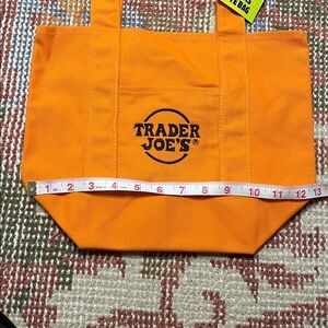 NWT Trader Joe’s Trick or Treat Mini Orange Canvas Tote Bag — a fun, festive collectible perfect for Halloween! This mini-sized tote features the signature “Trick or Treat” design with classic Trader Joe’s charm. Made of durable orange canvas, it’s ideal for small goodies, gifting, or display. Brand new with tags and ready to add a touch of seasonal cheer! 🎃👜
