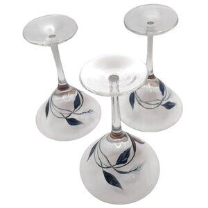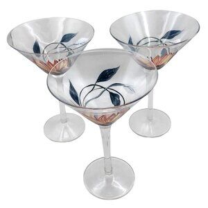 Hand Painted Botanical Floral Clear Glass Martini Cocktail Glasses Set of 3