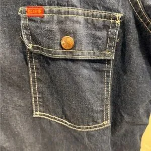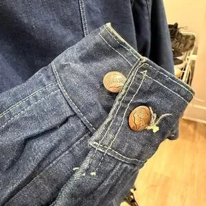 Condition: Vintage with normal light wear consistent with age. Minor fraying at a few buttonholes as shown in photos. No major damage, no holes, and no structural issues. Denim still has strong color and structure. Lining is clean and intact.