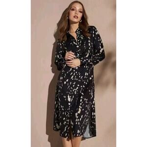 Massimo Dutti Women Dress Size 4 Black Collared Button Up Sheer Long Sleeve 1032