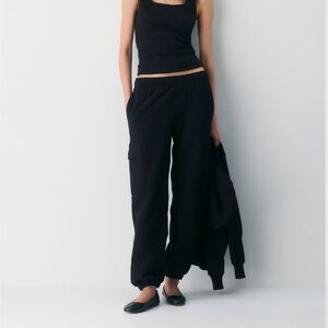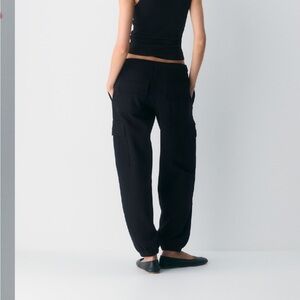 Aritzia black cargo joggers. Mega fit size Small Tall. Comfortable black cargo sweatpants with elastic waistband and interior cord, pockets at side legs, sides and back. New with tags no issues to note from SFPF home. Pls see pics for tags and measurements.