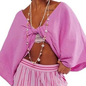 Free People Linen Twist Front Cropped Top in Orchid, Magenta OS