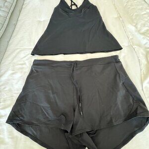Athleta Black Two-Piece Swimsuit | Fitted Tankini Top & Swim Shorts | Size XL