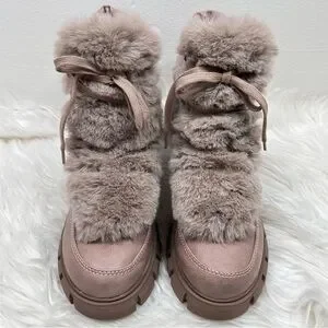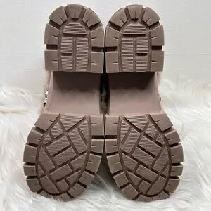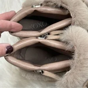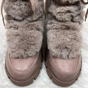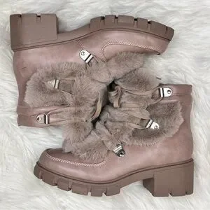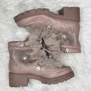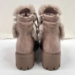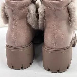 XOXO Odonna light taupe fur buckle lace-up chunky ankle booties in size 9.5.