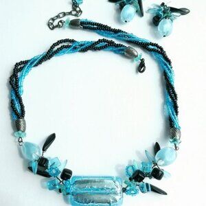 HOST PICK! Murano silver foil bead necklace in turquoise and black